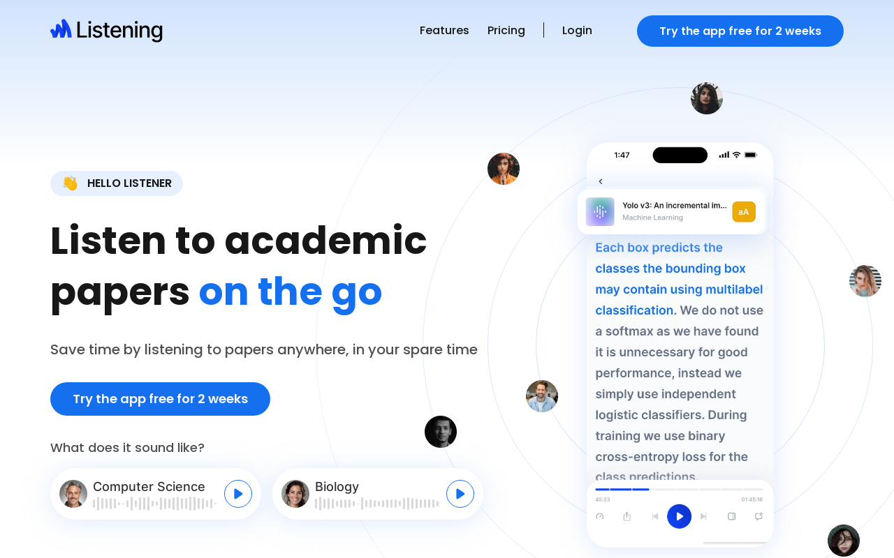 Rounding out the list of Speechify alternatives is a company called Listening. It is a multiplatform Text-to-Speech tool that transforms academic papers into spoken audio, making it easier for users to consume complex material on the go. The service is tailored for students, educators, and researchers, providing lifelike AI voices that effectively pronounce technical terms and skip over extraneous text like citations or footnotes.